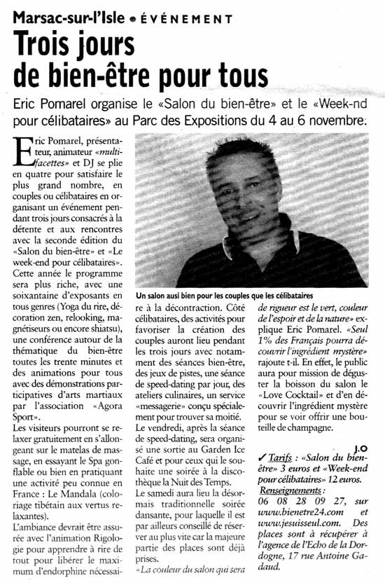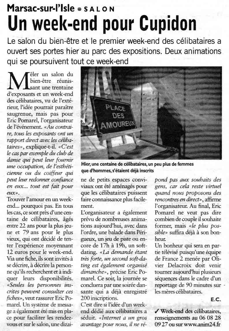Une émission de 30 mn consacré au Célibat en Dordogne sera diffusé sur les ondes de France Bleu Périgord dans l'émission d'Isabelle KARL le 17 Octobre 2011 à 9H00.