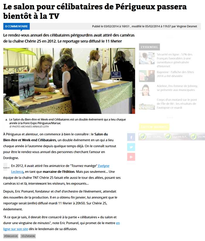 Depuis aujourd'hui et jusqu'à la manifestation, présence sur le site internet local SORTIE24 d'un bandeau et de l'affiche, dans les manifestations à la une.