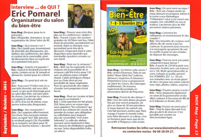 Inox Magazine N°8 - Magazine gratuit Bi-Mensuel Septembre / Octobre - 3 Pages complètes dont 1 page uniquement avec l'affiche et les 2 pages ci-dessous